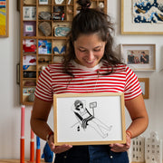 Handgetekende zwarte lijntekeningen van grappige figuren in herkenbare, alledaagse situaties. Soms gedurfd, soms met een boodschap, altijd oprecht.