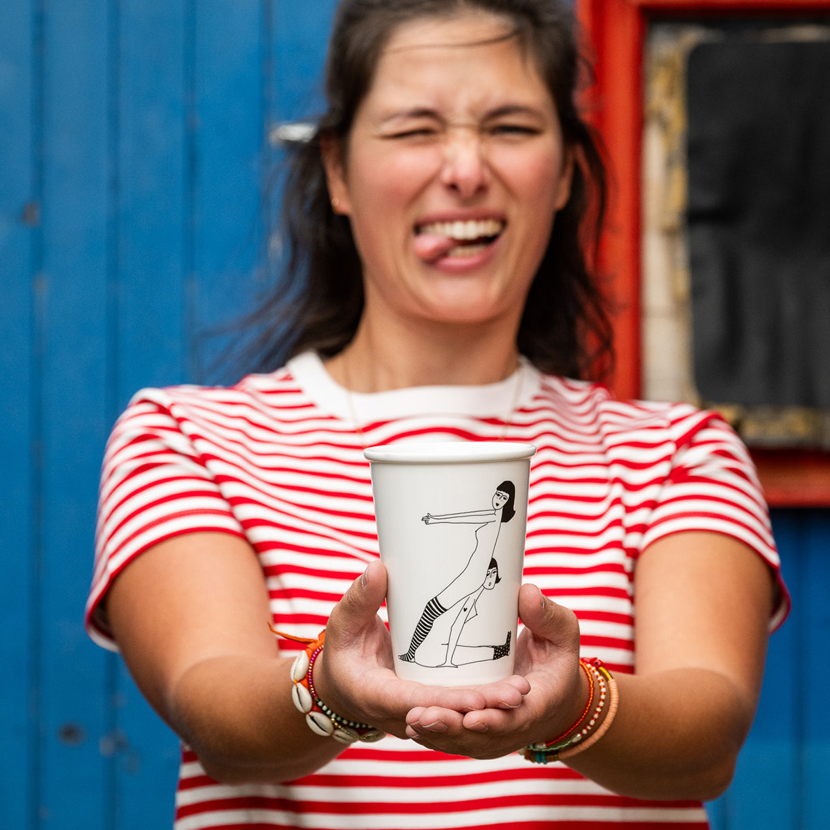 Handgetekende zwarte lijntekeningen van grappige figuren in herkenbare, alledaagse situaties. Soms gedurfd, soms met een boodschap, altijd oprecht.