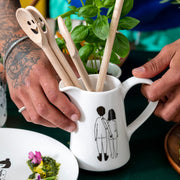 Handgetekende zwarte lijntekeningen van grappige figuren in herkenbare, alledaagse situaties. Soms gedurfd, soms met een boodschap, altijd oprecht.
