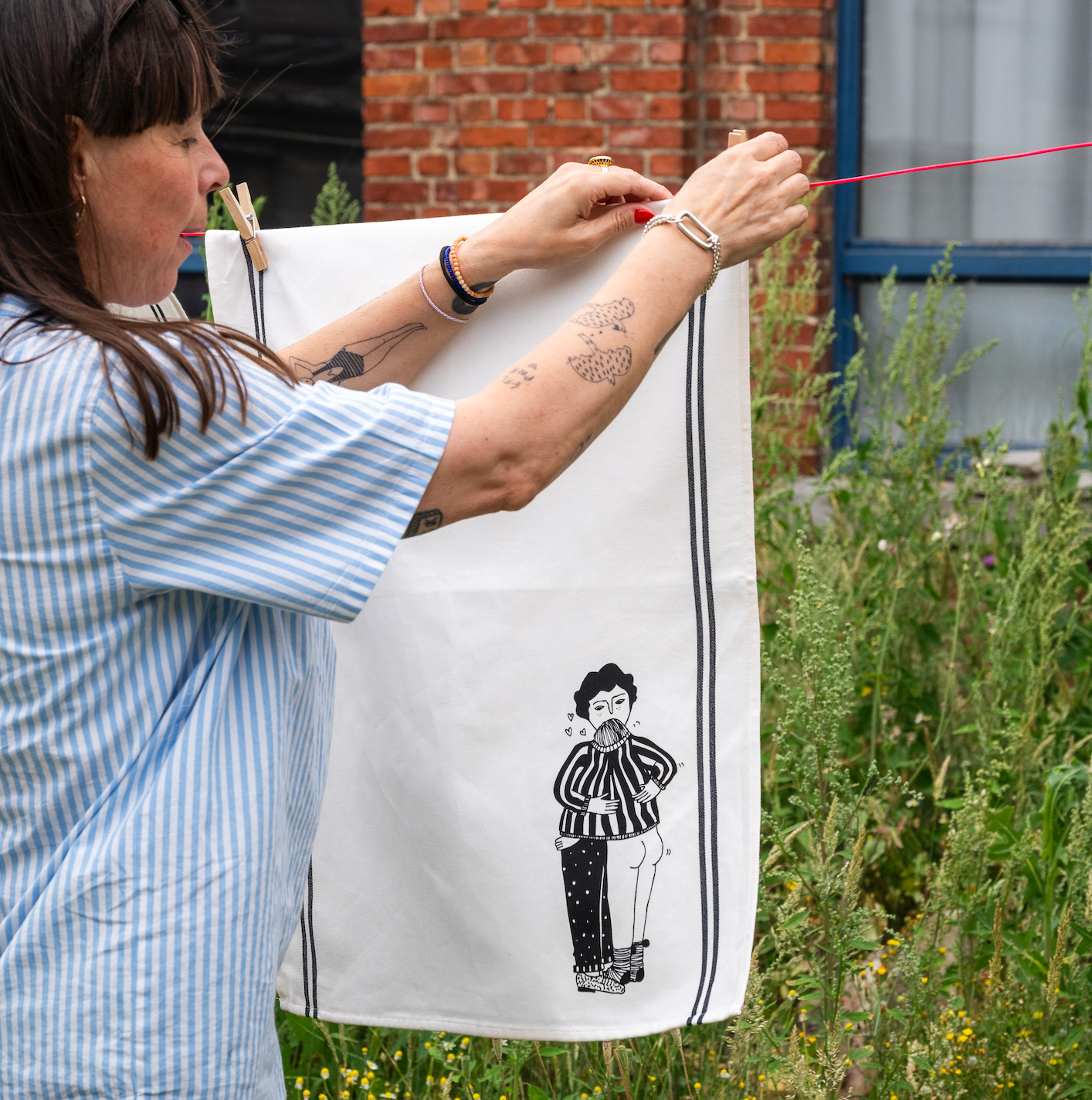 Onze keukenhanddoeken worden blanco geweven in Portugal en lokaal gezeefdrukt in Gent.
