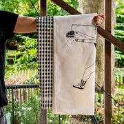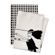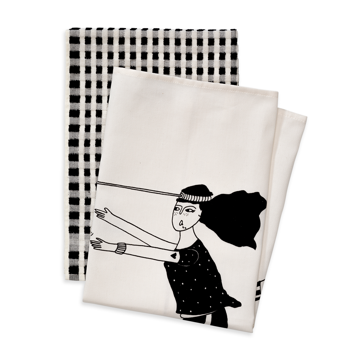 Twee theedoeken: één met helen b illustratie en één in zachte terry stof
