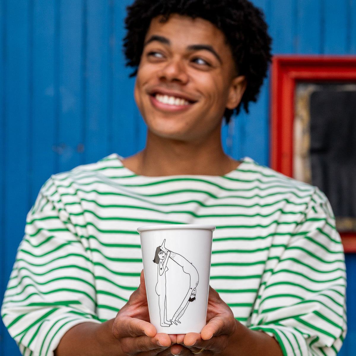 Handgetekende zwarte lijntekeningen van grappige figuren in herkenbare, alledaagse situaties. Soms gedurfd, soms met een boodschap, altijd oprecht.