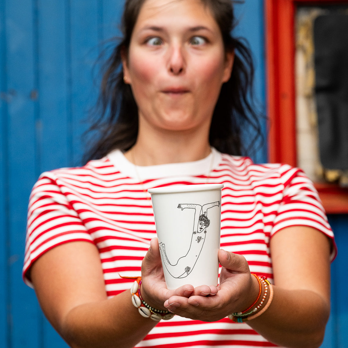 Handgetekende zwarte lijntekeningen van grappige figuren in herkenbare, alledaagse situaties. Soms gedurfd, soms met een boodschap, altijd oprecht.