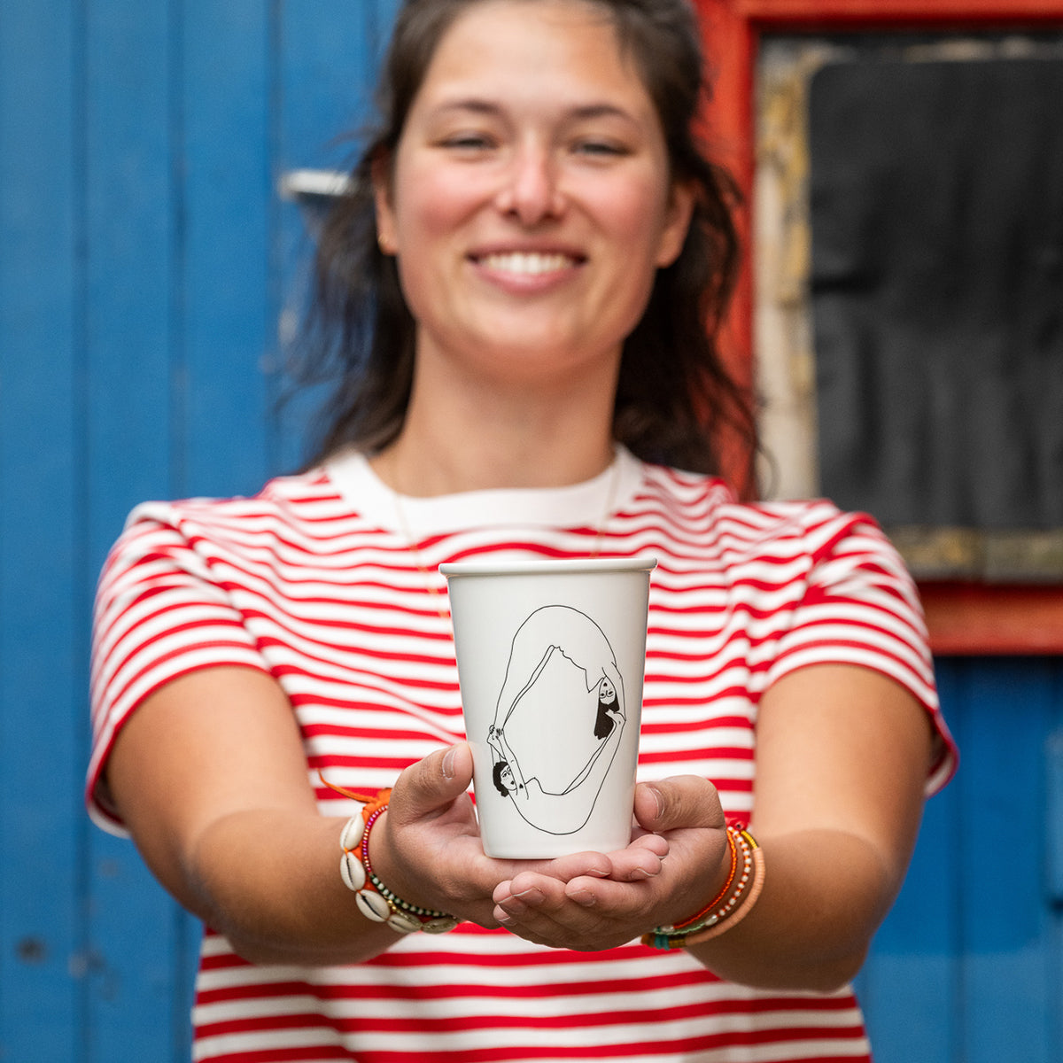 XL beker in porselein met illustratie van helen b