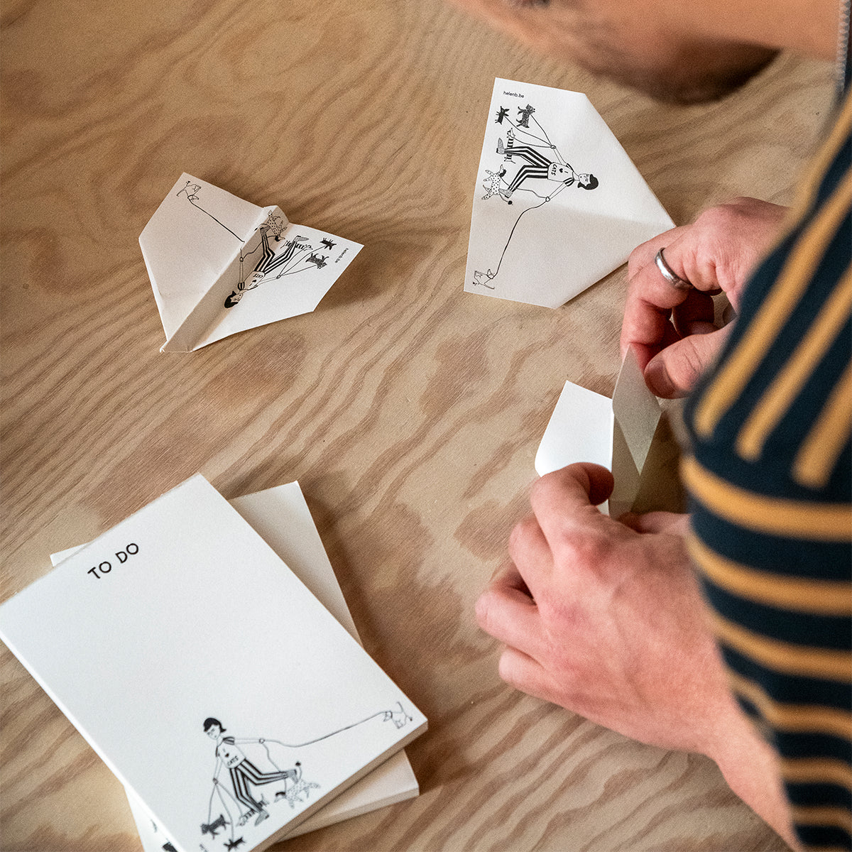 Blocnote van wit gerecycleerd papier met illustratie van helen b