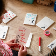 Blocnote van wit gerecycleerd papier met illustratie van helen b