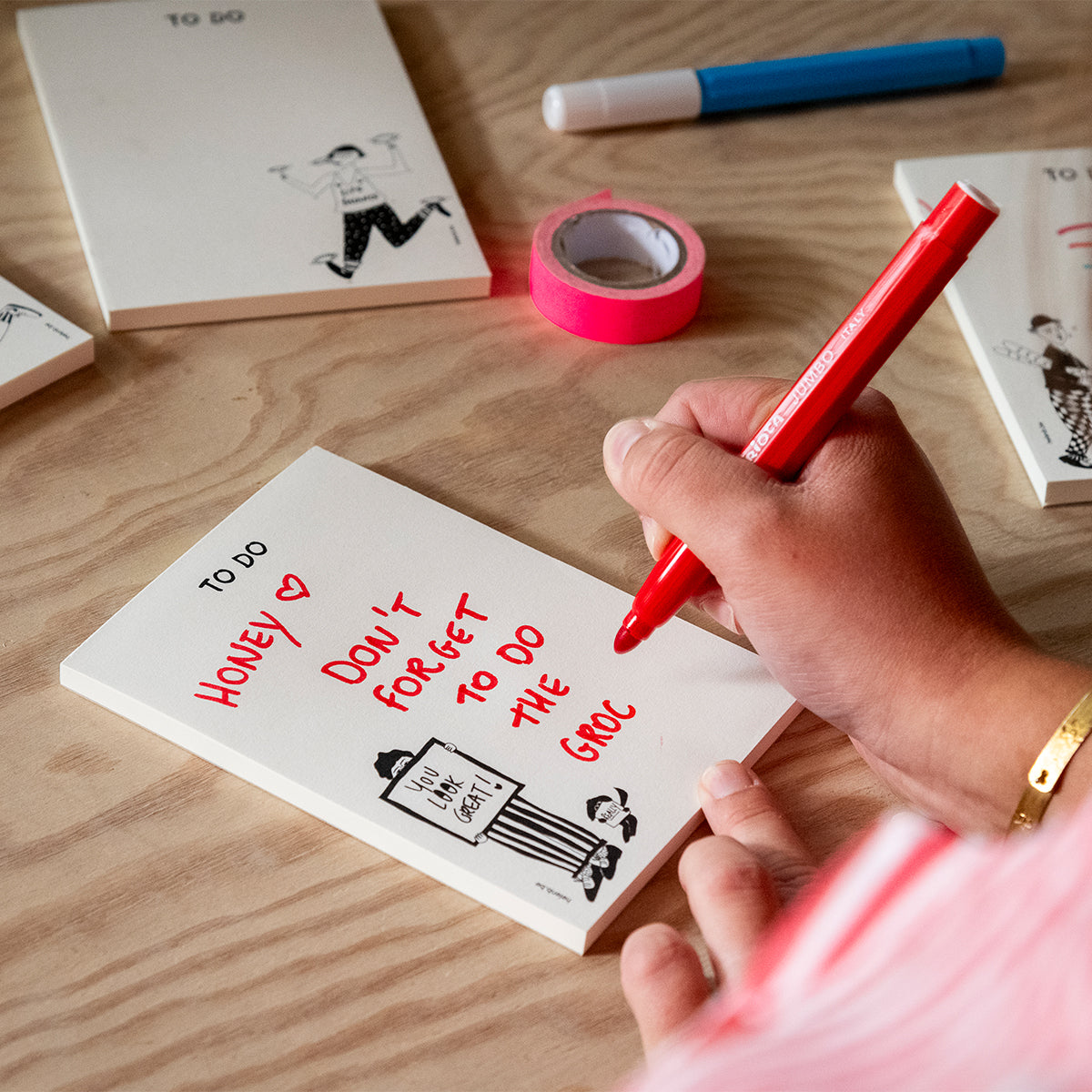 Blocnote van wit gerecycleerd papier met illustratie van helen b