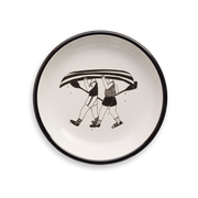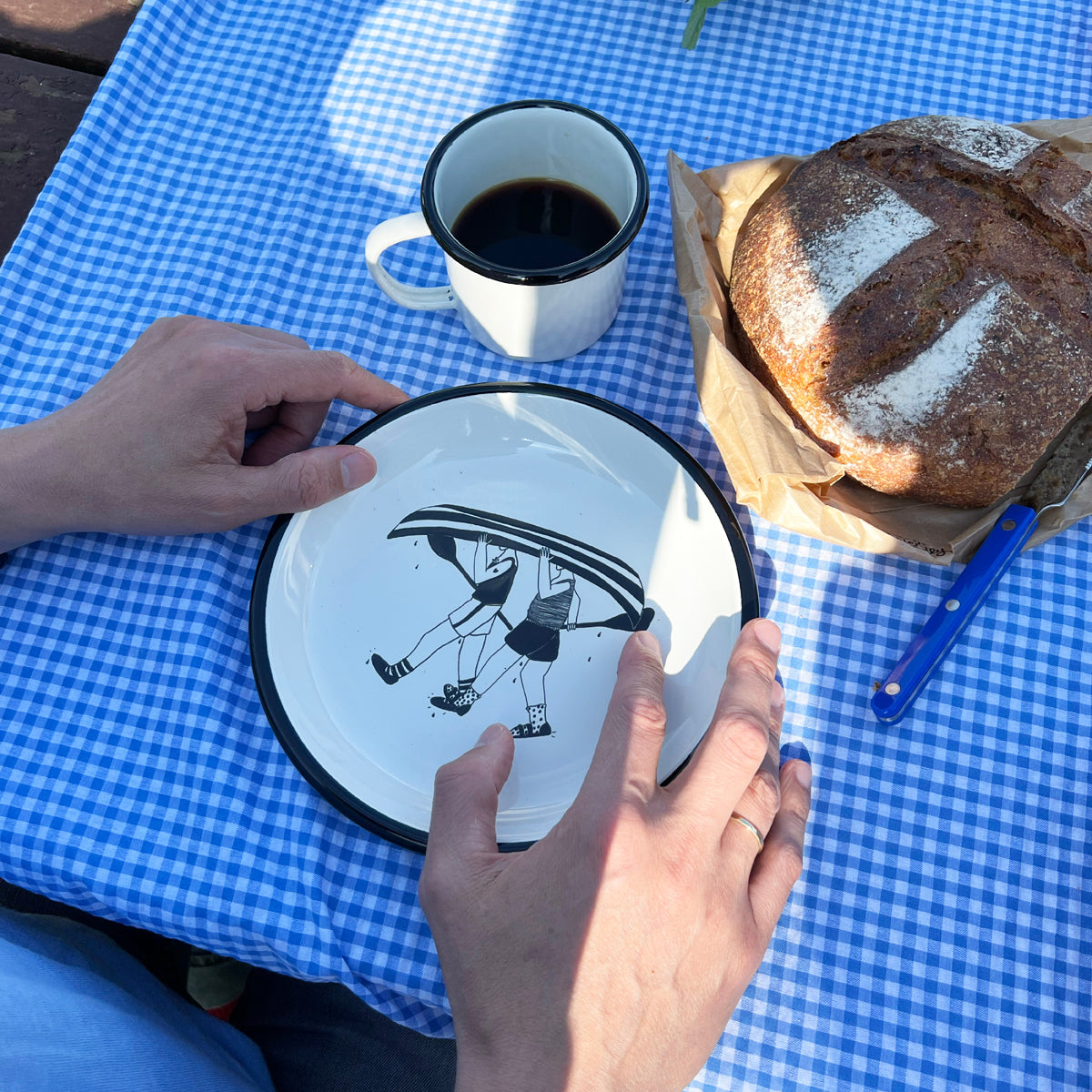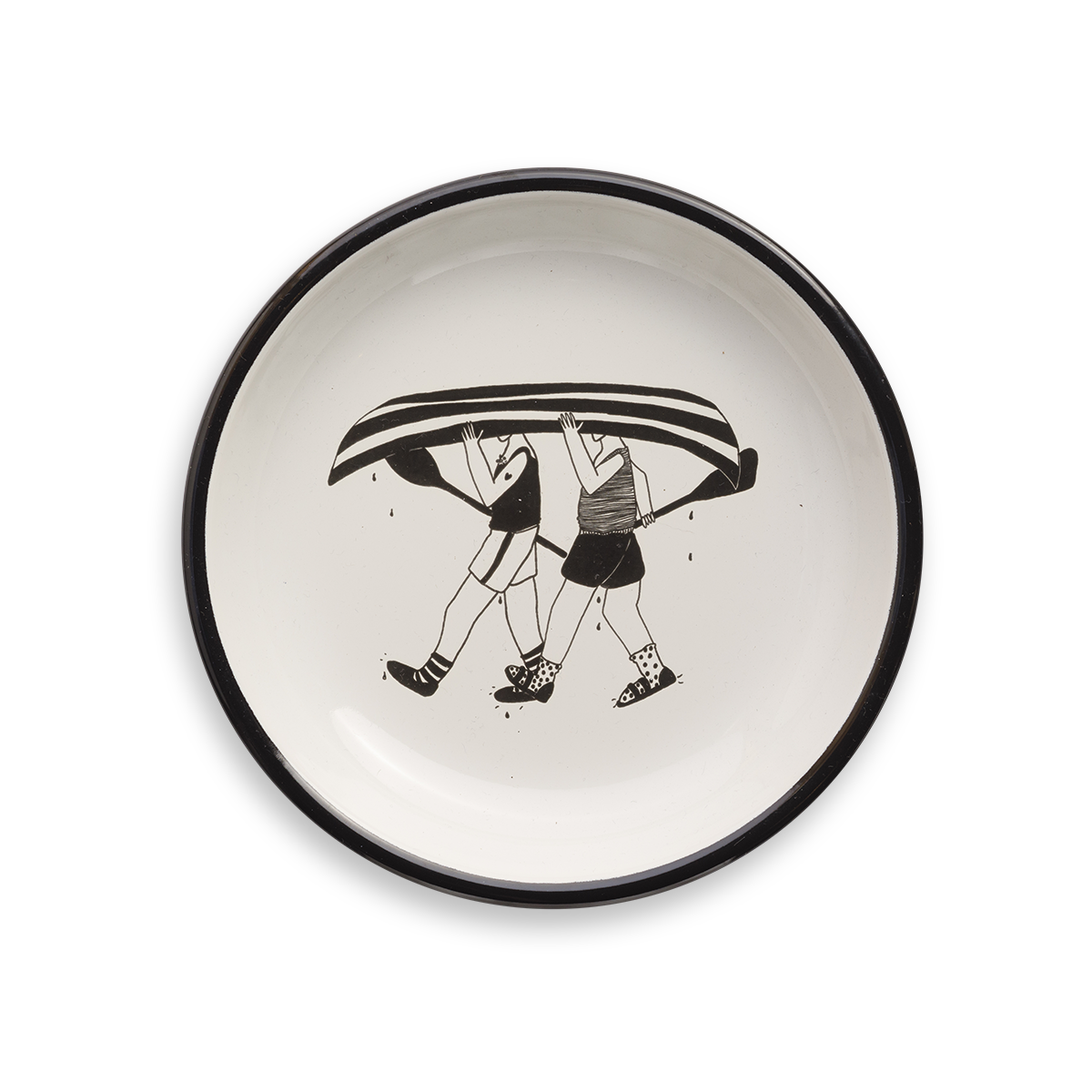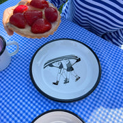 Bord in emaille met helen b illustratie.