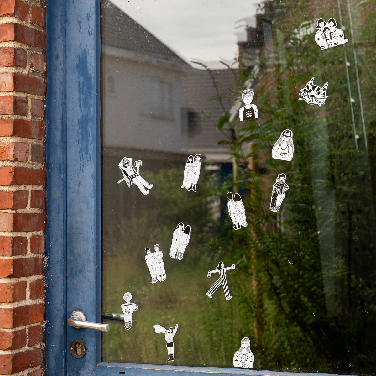 Handgetekende zwarte lijntekeningen van grappige figuren in herkenbare, alledaagse situaties. Soms gedurfd, soms met een boodschap, altijd oprecht.