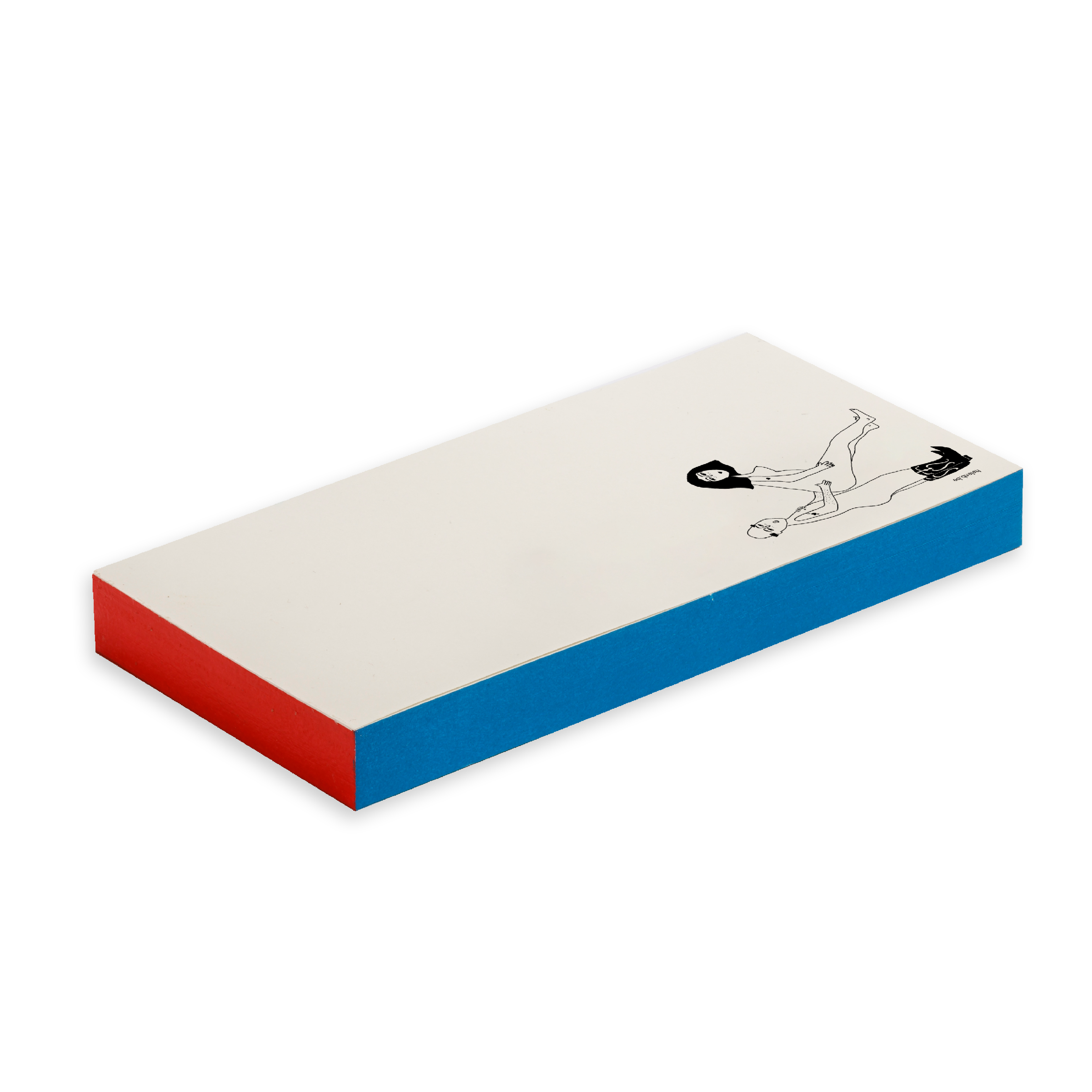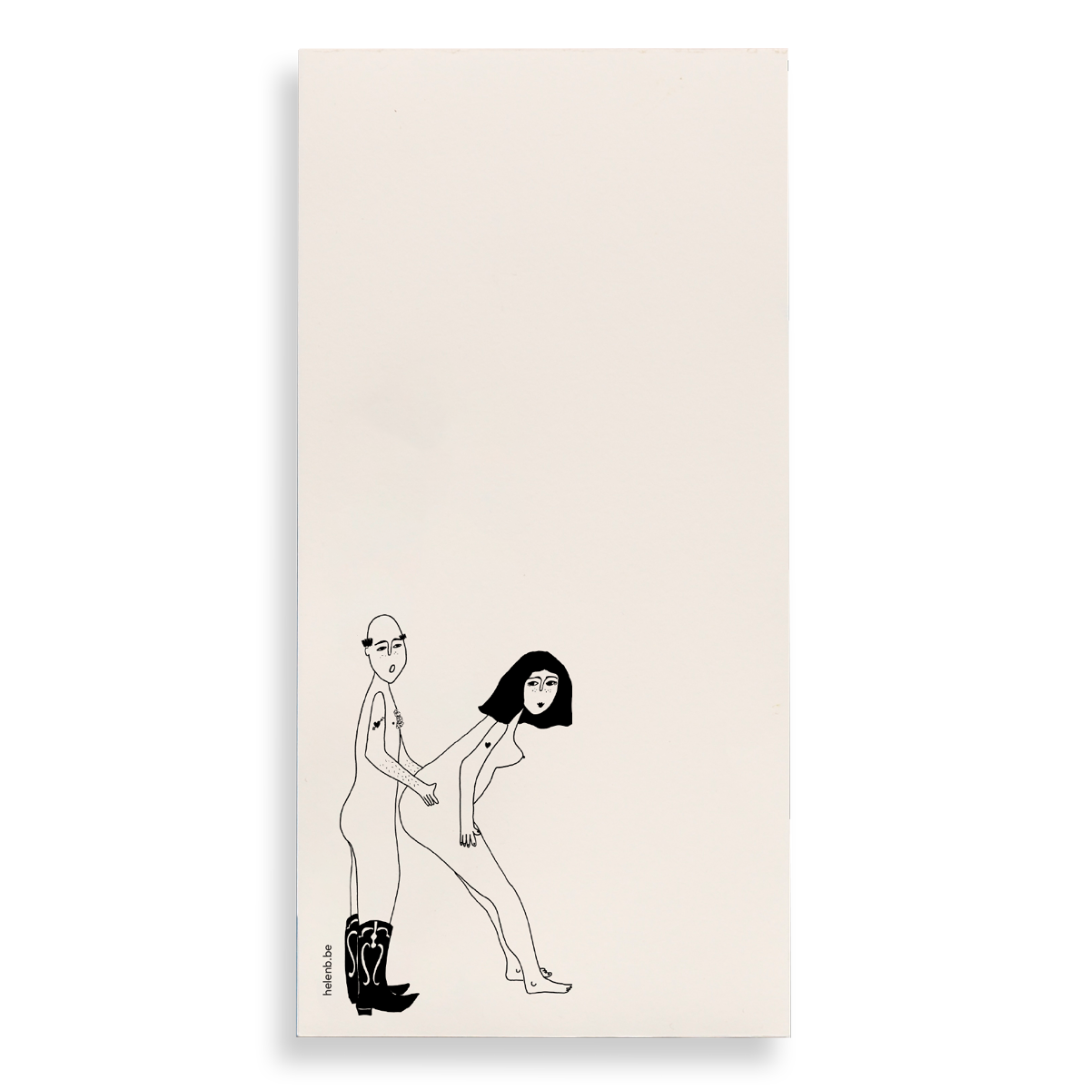 Lange blocnote van wit gerecycleerd papier met illustratie van helen b