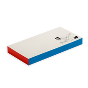 Blauwe kleur op snee en rood gelijmd bovenaan
