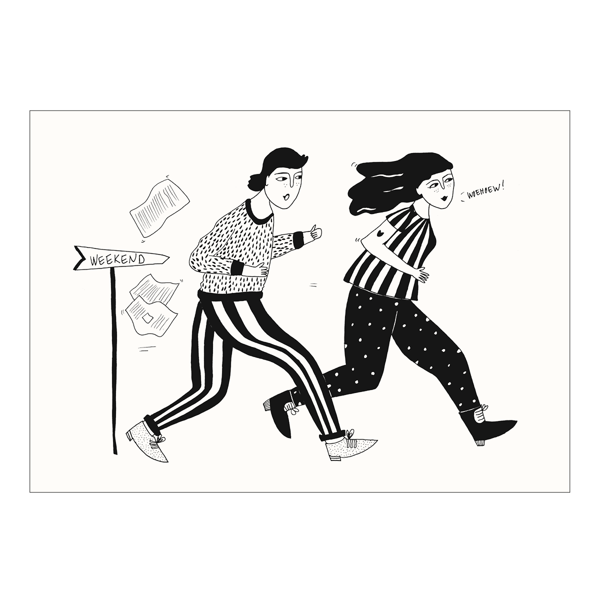 Handgetekende zwarte lijntekeningen van grappige figuren in herkenbare, alledaagse situaties. Soms gedurfd, soms met een boodschap, altijd oprecht.