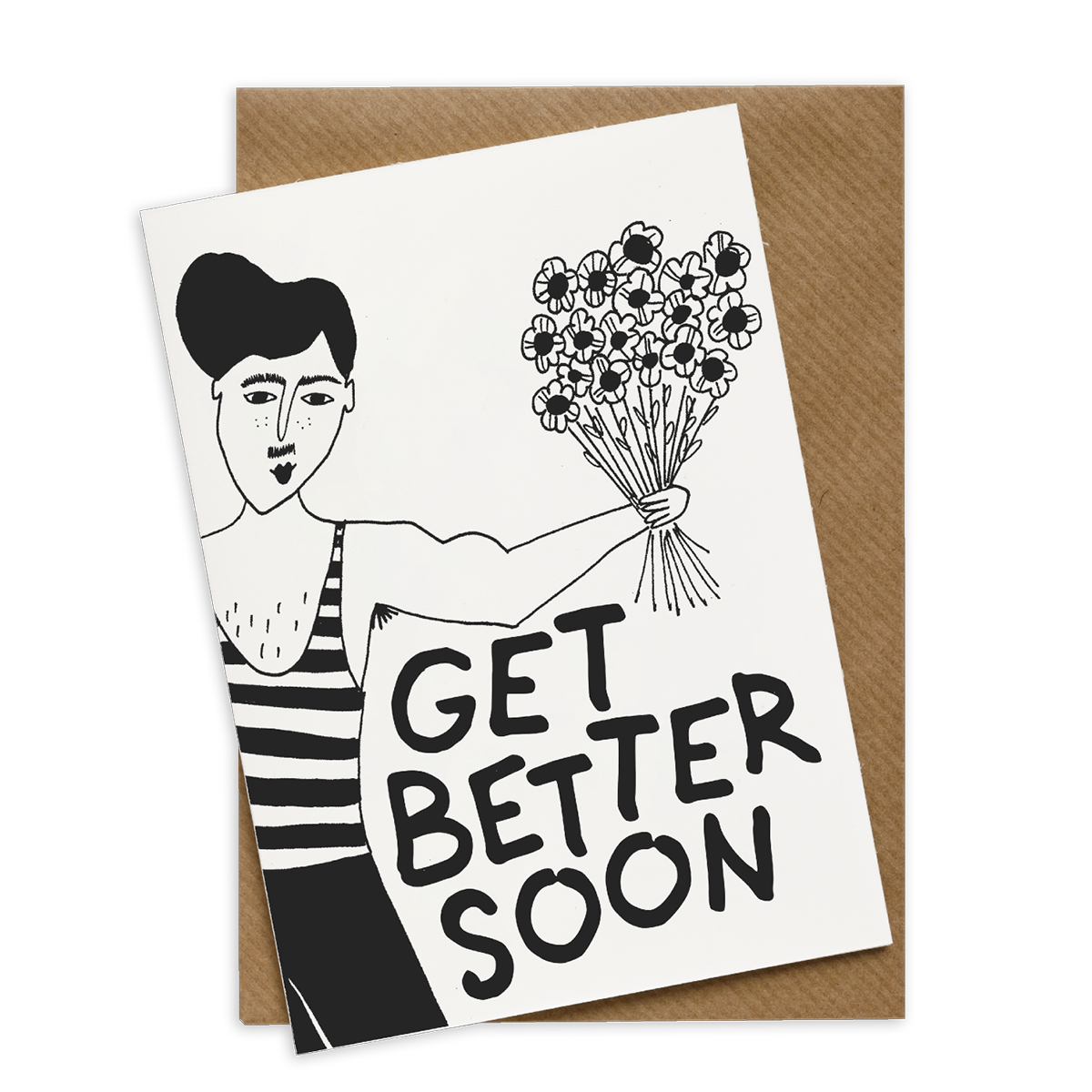 Wenskaart op wit papier met illustratie van helen b, inclusief omslag en verpakt in een 100% recycleerbaar zakje