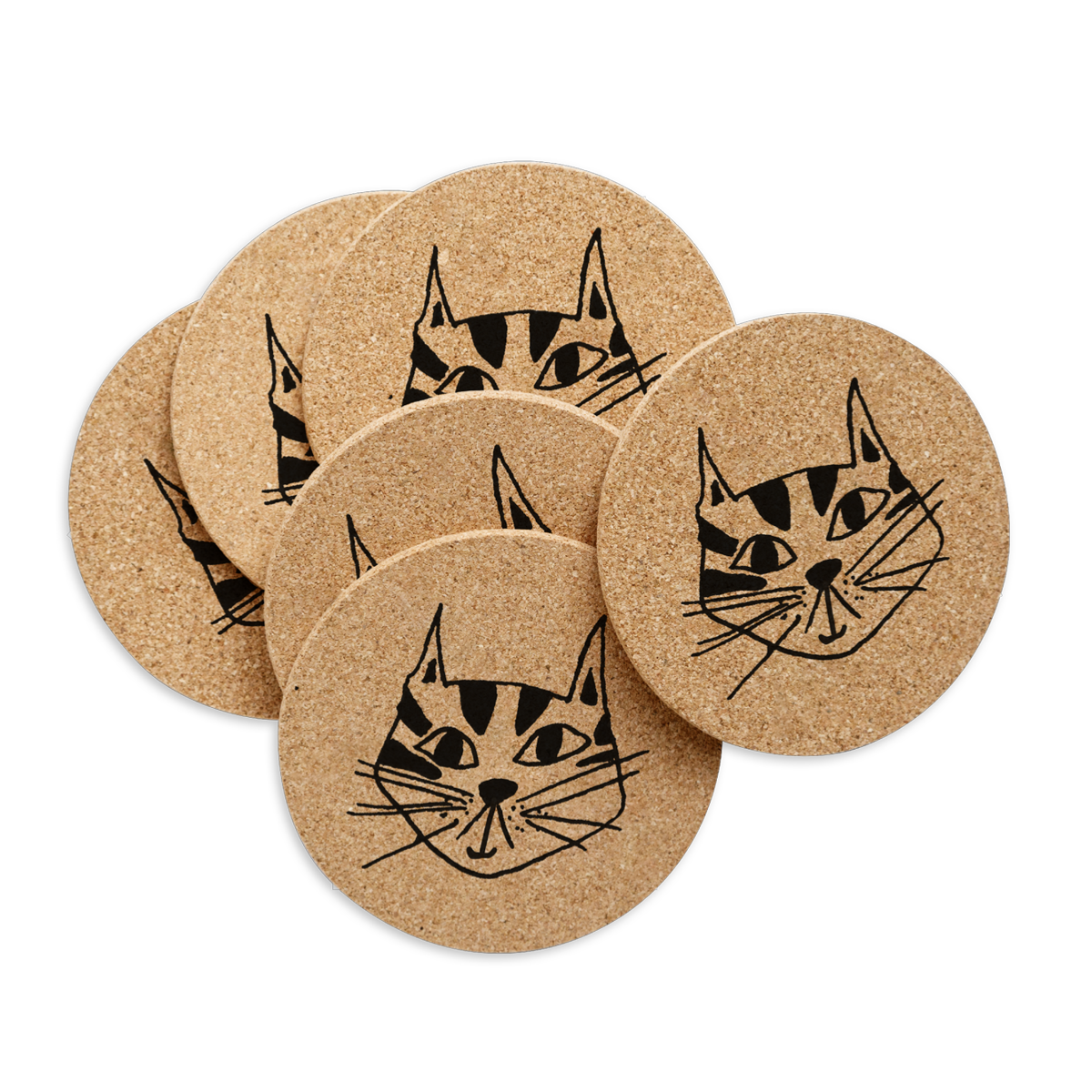 Set van 6 ronde onderzetters in kurk met illustratie van helen b