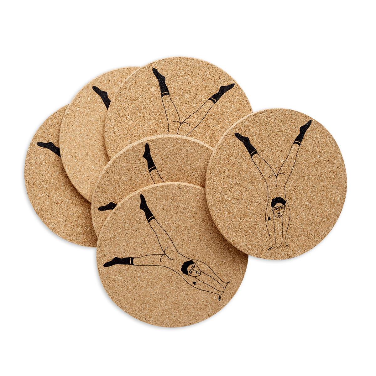 Set van 6 ronde onderzetters in kurk met illustratie van helen b