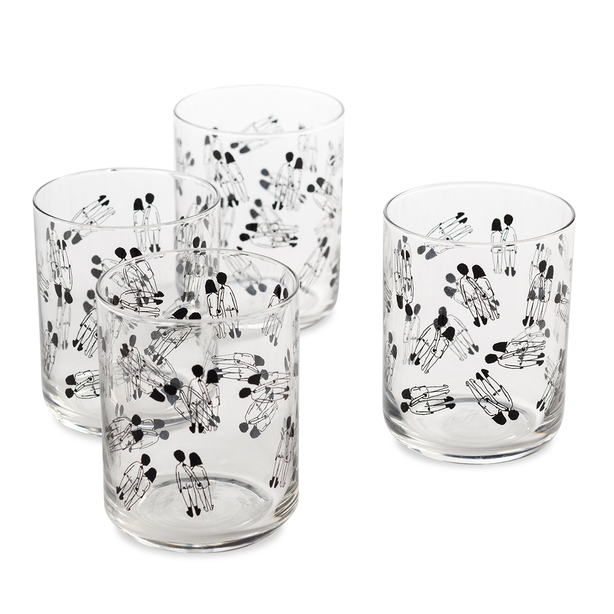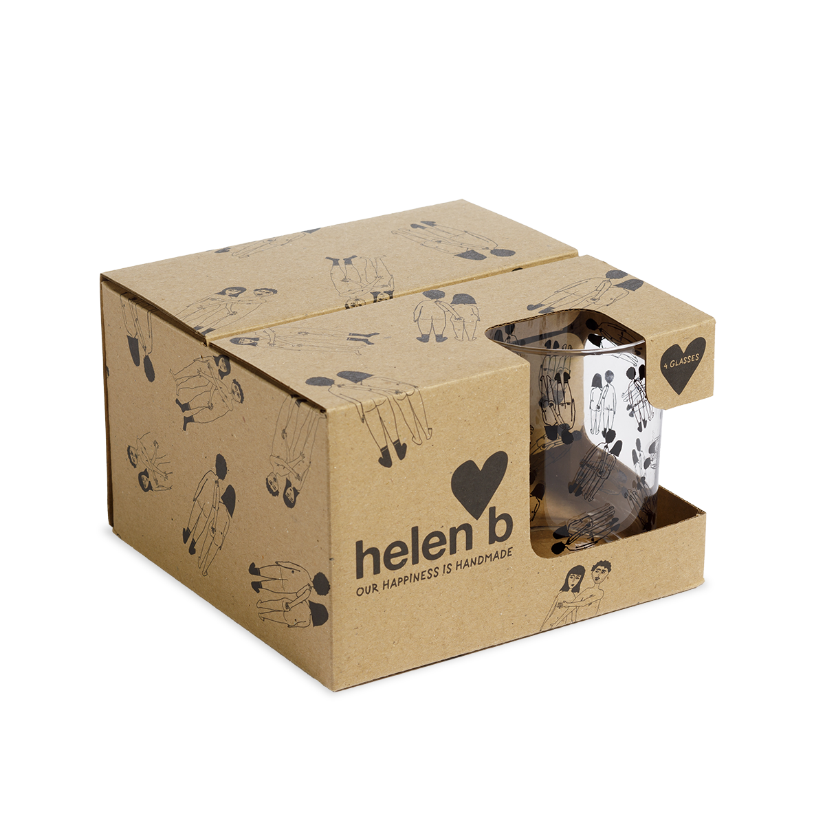 4 glasses with illustration of helen b, in a beautiful cardboard gift box