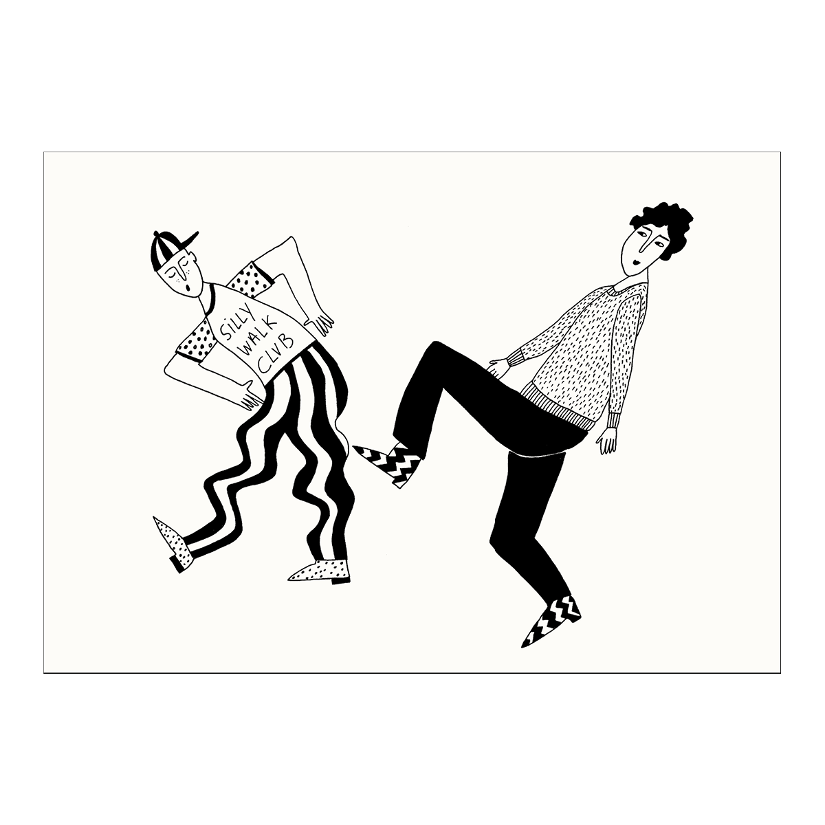 Des illustrations au trait noir qui donnent vie à des personnages amusants, espiègles dans des scènes du quotidien