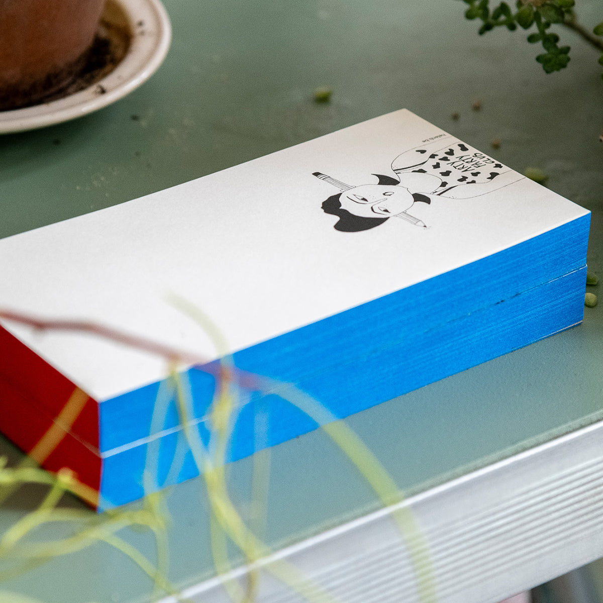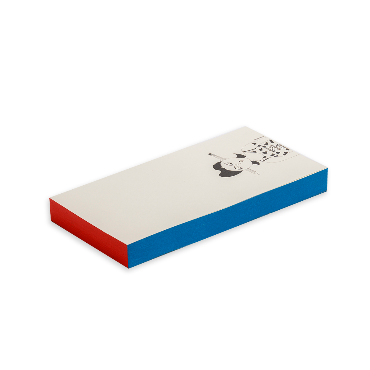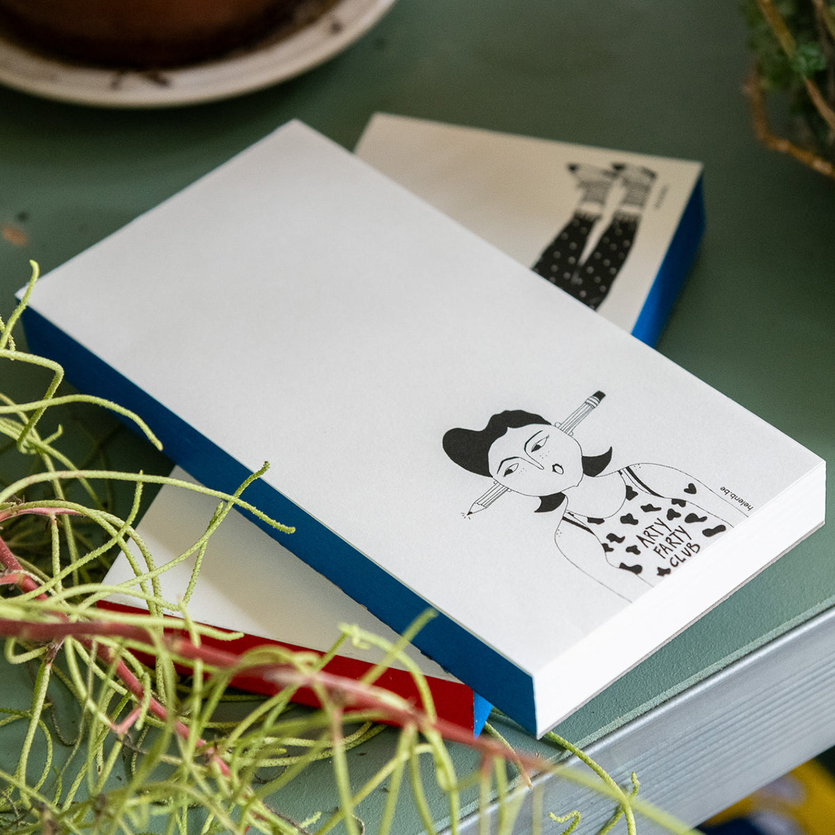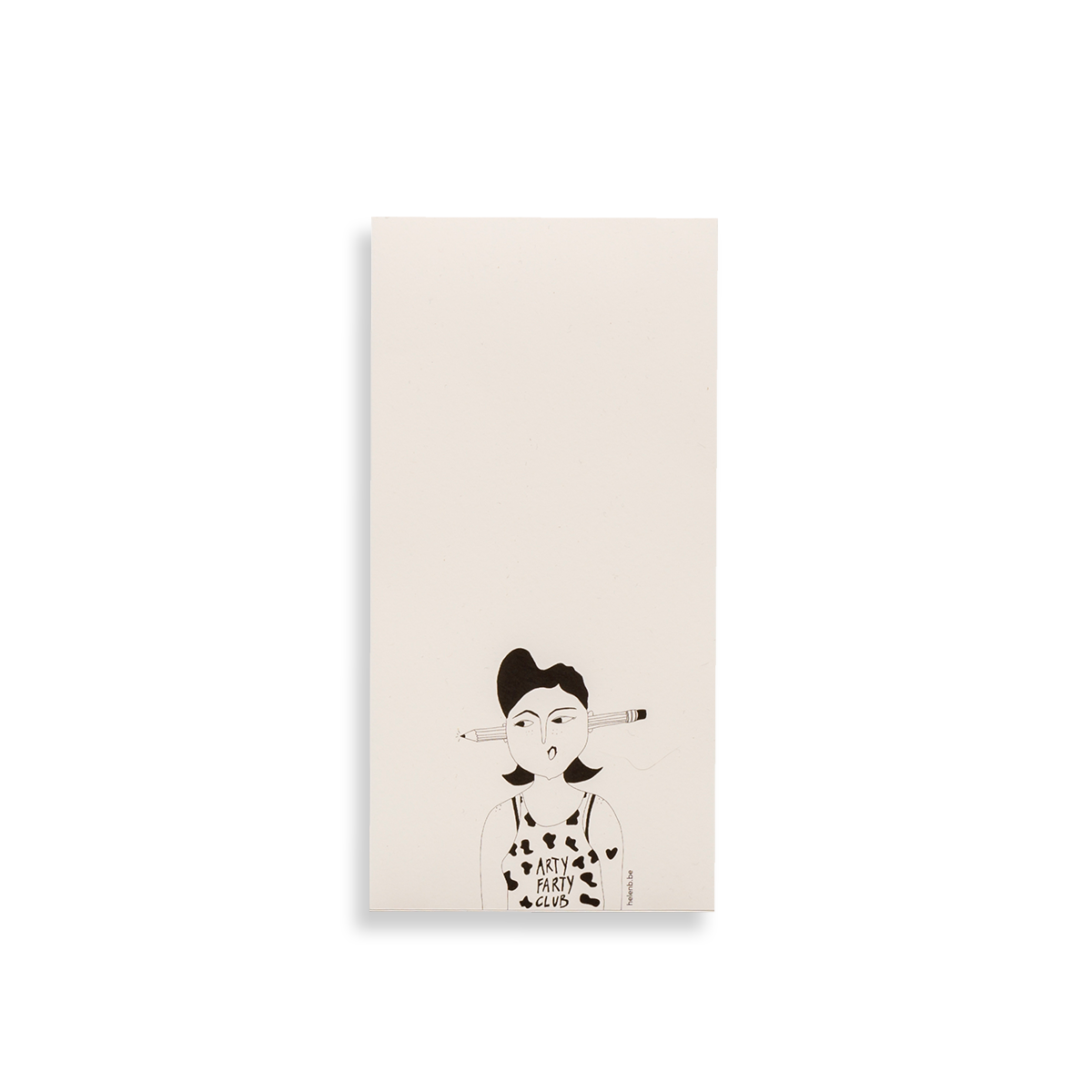 Lange blocnote van wit gerecycleerd papier met illustratie van helen b