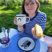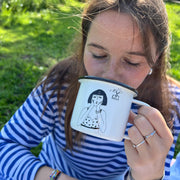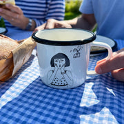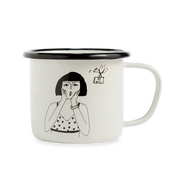 Mok in emaille met helen b illustratie.